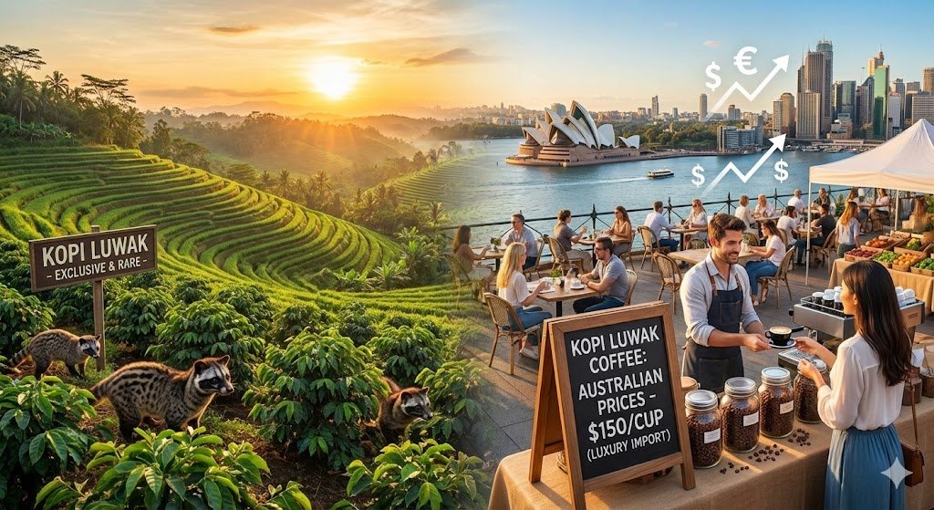 - Market Trends: Kopi Luwak is the world’s priciest coffee, often >US$1,000–1,500 per kg[15] (≈AU$1,500–2,500). Its market is growing modestly: global sales are projected to rise from ~US$7.84 billion in 2024 to $8.23 billion in 2025[16] (≈5% annual growth). Luxury/rarity appeal is a major driver[16], as is interest in “exotic” and ethically sourced products[17]. Recent analyses cite trends like sustainable/ethical sourcing and e-commerce expansion as fueling demand[17]. Note also that Australian import rules now allow up to 1 kg of roasted Kopi Luwak per person without a special permit[1], easing small-batch imports for aficionados.